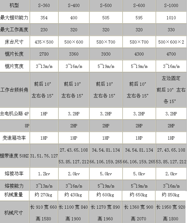 S系列立式帶鋸床技術(shù)參數(shù):